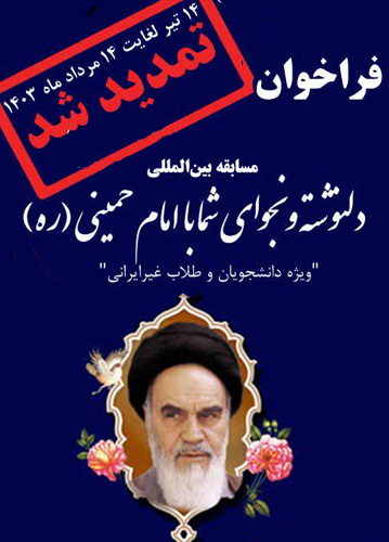 موسسه تنظیم و نشر آثار حضرت امام خمینی(ره) و ستاد خارجی بزرگداشت سی و پنجمین سالگرد ارتحال حضرت امام خمینی (ره) با هدف آشنایی نسل جوان در سراسر دنیا با امام دلها و اندیشه های مانای ایشان ، مسابقه بین المللی دلنوشته و نجوای شما با امام خمینی (ره ) – ویژه دانشجویان و طلاب خارجی را برگزار می نماید