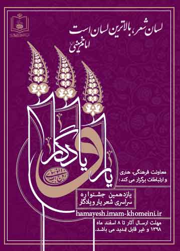 باشد که مدد حضرت رحمان، یار ما و انفاس قدسی و امداد نورانی پیامبر (ص) و ذوات مقدس معصومین، روشنگر راه ما شود تا جلوه ای از جلال این بزرگمرد تاریخ معاصر که به حق، خلاصه فرهنگ ناب اسلام محمدی و عرفان شیعی است، به همت شاعران معاصر شرکت کننده در این جشنواره، در قالب شعر تجلی پیدا کند.